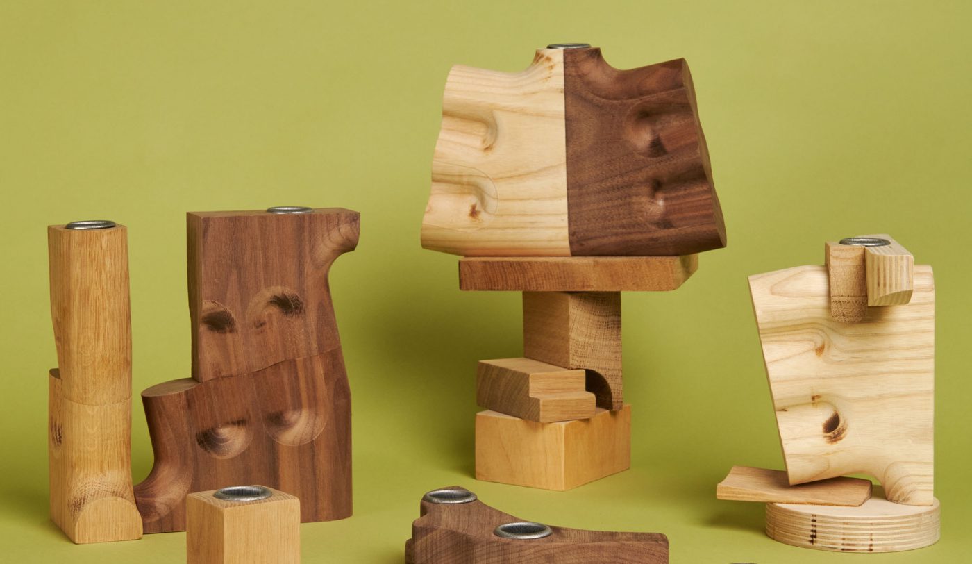 In de Scrap Wood Sculptures Design Club werken deelnemers onder begeleiding van ontwerper Jonas Lutz houten restmaterialen. Met behulp van verschillende bewerkingstechnieken maken ze een eigen kaarsenhouder.
